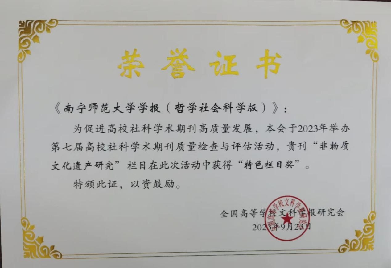 《betway必威西汉姆联官网学报(哲学社会科学版)》创刊于1973年,是由betway必威西汉姆联官网主管、主办的综合性人文社会科学学术期刊,双月刊,每逢单月1号出刊。入选中国人文社会科学期刊AMI综合评价扩展核心期刊、RCCSE中国核心学术期刊(A)、CACJ中国应用型核心期刊。曾获“首届中国百强学报”“第四届全国优秀社科学报”“第六届全国高校社科优秀期刊”“第七届全国高校质量进步社科期刊”“第十届广西优秀期刊”“2022~2023年度广西高校精品期刊”“2024~2025年度广西高校精品期刊”等荣誉。“非物质文化遗产”栏目于2010年、2023年两度被评为“全国高校社会科学期刊特色栏目”。