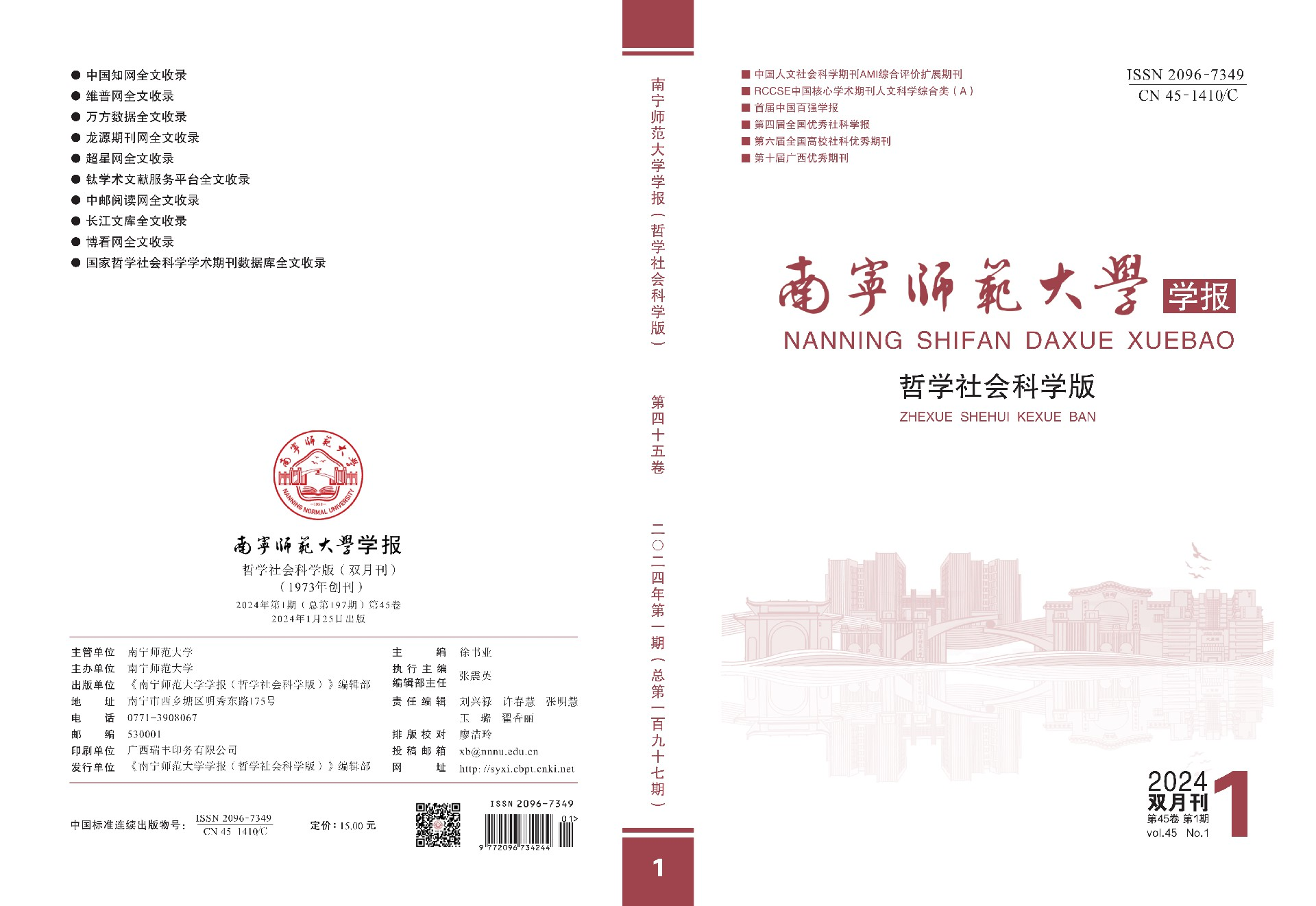 [摘要]2023年学报哲学社会科学版被中国社会科学评价研究院评为“2022年度中国人文社会科学期刊AMI综合评价”扩展期刊,本年度编辑部负责编辑出版的三种期刊先后获得各类奖励十余项,其中获得的集体荣誉称号有:“第十届广西优秀期刊”“全国高校质量进步社科期刊”“2022—2023年度广西高校精品期刊”“2022—2023年度广西高校优秀期刊”“2022-2023年度广西优秀科技期刊”,获得的个人荣誉称号有:“2023年度广西高校学报优秀主编”“2023年度广西高校学报优秀编辑”“2022-2023年度优秀主编”“2022-2023年度优秀编辑部主任”“2022-2023年度优秀编务”。“非物质文化遗产研究”栏目获得第七届全国高校社科期刊“特色栏目奖”。