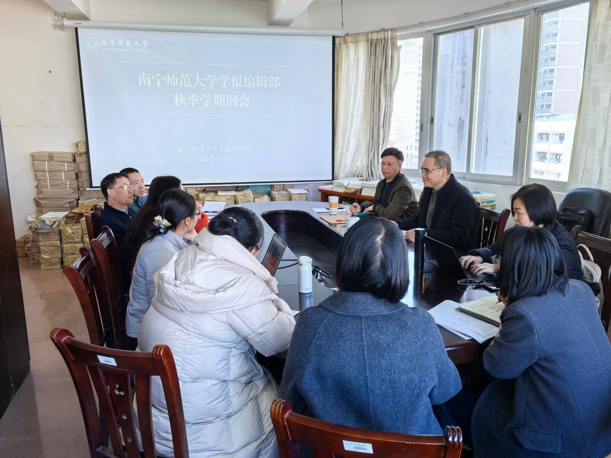 2026年1月6日(周二)下午15:00-16:30,学报编辑部在明秀校区行政楼716资料室举行2025年秋季学期期末工作总结会,会议由学报编辑部主任张震英主持,编辑部副主任覃凌波、主任助理玉璐及编辑部全体在职在岗人员参加会议。会议首先对2025年新晋升正高职称的责任编辑表示祝贺,迄今编辑部已有3名正高职称、4名副高职称。会议通报了自然科学版人员调整情况,通过校内调配和内部调整,目前学报自然科学版编辑部已拥有4名专职编辑。会议还通报了学报自然科学版变更为双月刊的努力和实施进展、学报编辑部经费使用办法修订进展、面向全国青年编委选聘、哲学社会科学版2026年栏目设置及重点选题发布以及哲学社会科学版、自然科学版、广西教育学院学报三刊2026年第1期出刊进度等情况。会议强调了保质按时出刊的重要性,要求哲学社会科学版、自然科学版严格按照编校时间进度表完成2026年第2、3期各项工作,并提醒重申了准时出刊与年终绩效、评优评先、外出调研、年终考核等挂钩的政策,对部门和个人影响重大,希望各位责编高度重视。会议还布置了哲学社会科学版2026年春季学期学术会议筹备事宜,要求任务到人,每位责编至少组织一次;要求哲学社会科学版、自然科学版确定第1期页码后,重新与印刷厂签订印刷合同;布置了2026年度有序更新办公设备事宜;布置了学报编辑部资料室整理使用事宜;布置了完善和更新学报编辑部官网内容事宜,要求各位责编提供个人简历;会议对新加盟编辑部的老师表示热烈欢迎,对借调期满的老师表示衷心感谢;会议最后提醒了寒假期间的相关工作和注意事项,并祝各位责编老师春节快乐、寒假安康。