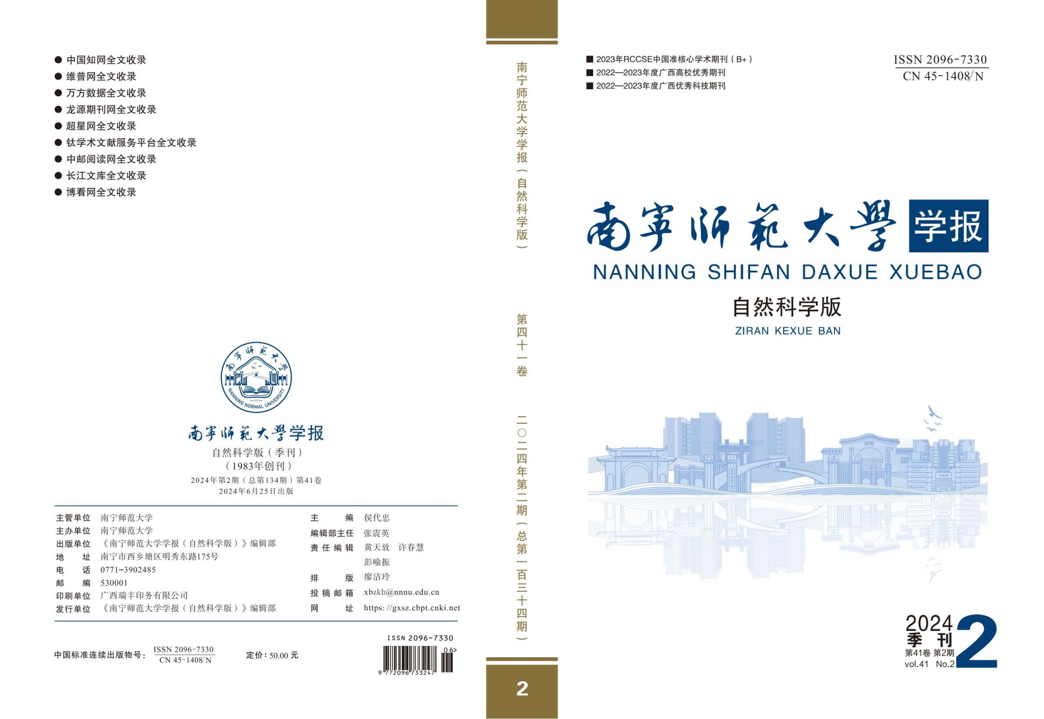 《betway必威西汉姆联官网学报(自然科学版)》,主管、主办单位为betway必威西汉姆联官网,由betway必威西汉姆联官网学报编辑部编辑出版,季刊,每逢1、4、7、10月1号出版。国际标准刊号:ISSN 2096-7330,国内刊号:刊号(CN):CN 45-1408/N。2024年4月期刊再次入选“RCCSE中国准核心学术期刊(B+)”。2024年6月,被评为第四届“西牛计划”之“优秀中文科技期刊”。2024年8月,在《中国应用型期刊评价研究报告(2023版)》(CACJ)中被评为“中国应用型扩展期刊”。期刊被中国知网、维普网、万方数据、龙源期刊网、超星网、长江文库、钛学术文献服务平台、中邮阅读网、长江文库、博看网等数据库全文收录。